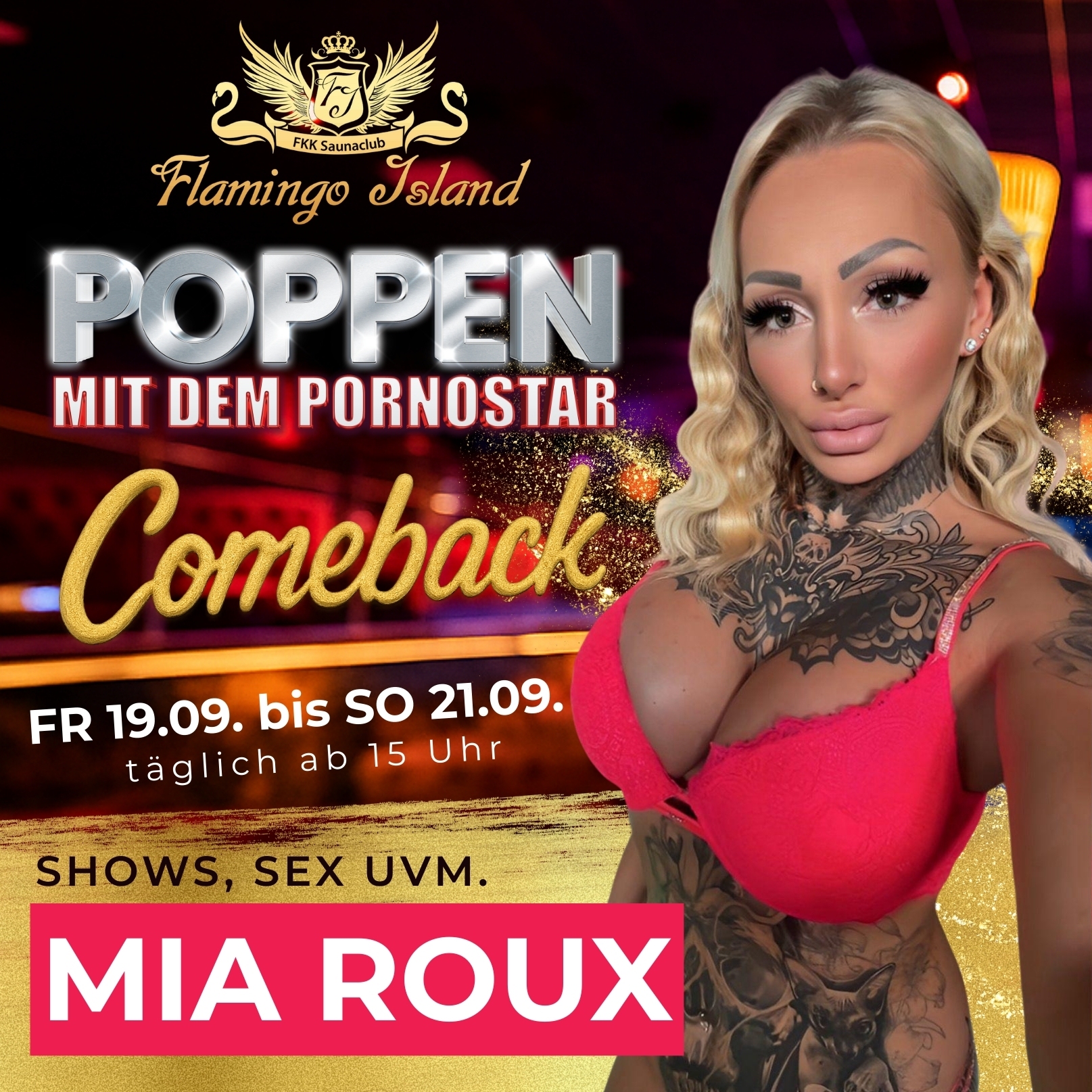 Der internationale Pornostar Mia Roux feiert ihr heiß ersehntes Comeback im FKK Flamingo Island – exklusiv, hautnah und nur für kurze Zeit!